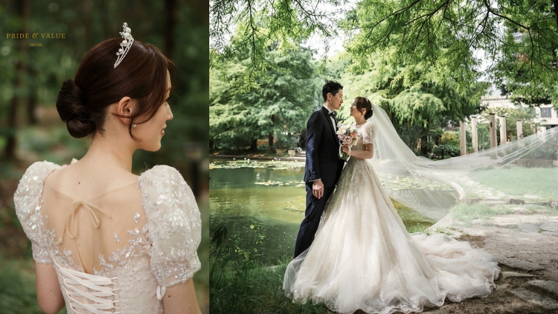 Pride & Value Dress(プライド アンド バリュードレス)では、韓国ウェディングドレスを中心に、花嫁様一人ひとりにぴったりの一着をお選びいただけます。韓国女優のような華やかなドレスから、ナチュラルで優雅なデザインまで、幅広いラインナップをご用意しております。