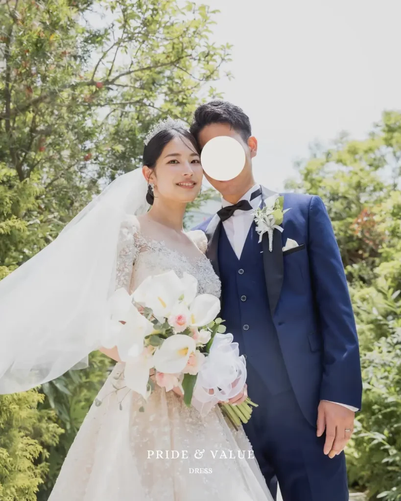 挙式当日、無事に素敵な結婚式を迎えられた花嫁様から、お写真と一緒に「福岡から来て良かった」と嬉しいメッセージもいただきました。最初のご試着の時からプラバリュの韓国ドレスを気に入っていただけて、心から嬉しく思っています。韓国ドレスとアクセサリーが完璧にマッチし、花嫁様は本当に輝いていました♡お天気にも恵まれ、ドレスが美しく輝き、その美しさを一層引き立てていました^^これからも、素敵な花嫁様と一緒に最高の瞬間を作り上げていきたいと思っています。末永くお幸せに♡