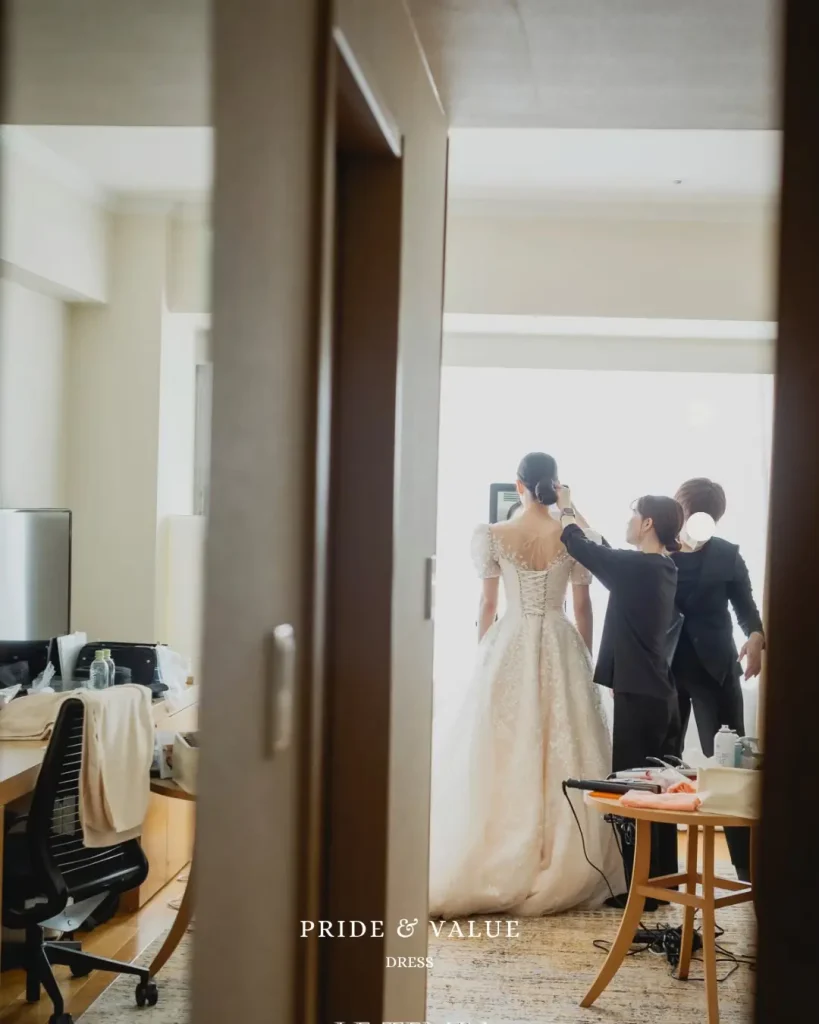 こんにちは。Pride & Value Dress(愛称:プラバリュ)です。今回は、プラバリュで素敵な韓国ドレスをお召しになった花嫁様のご紹介をさせていただきます。 福岡からわざわざ足を運んでくださった花嫁様は、Instagramでプラバリュのドレス「Alin : アリン」に一目惚れされたとのこと。Instagramを通じてお客様とご縁を結ぶことができ、とても嬉しく思います♩ こんな素敵なお話を聞けて、私たちもとても幸せです。