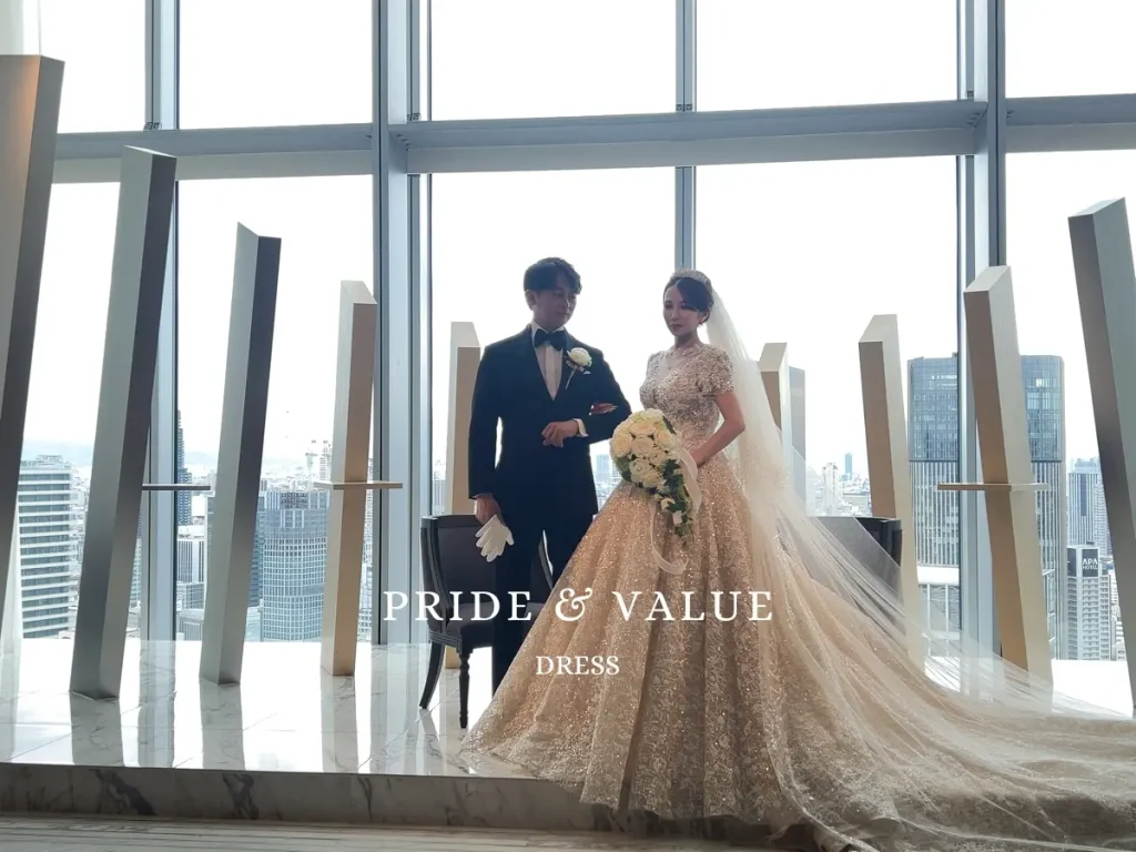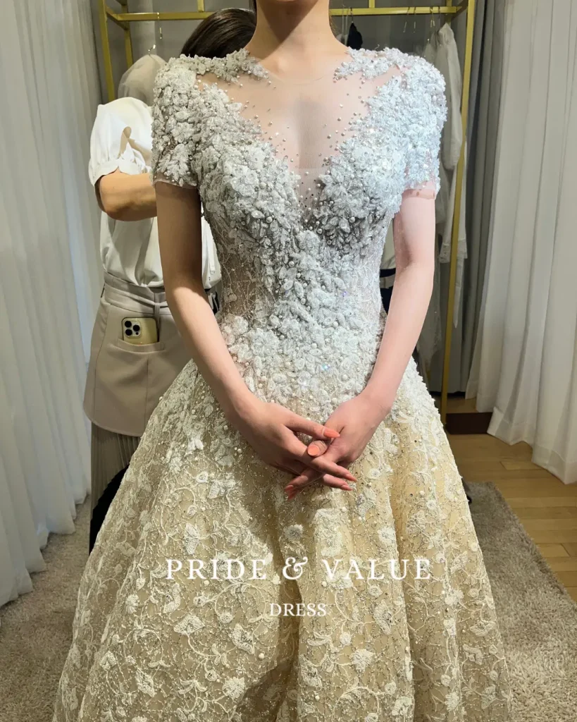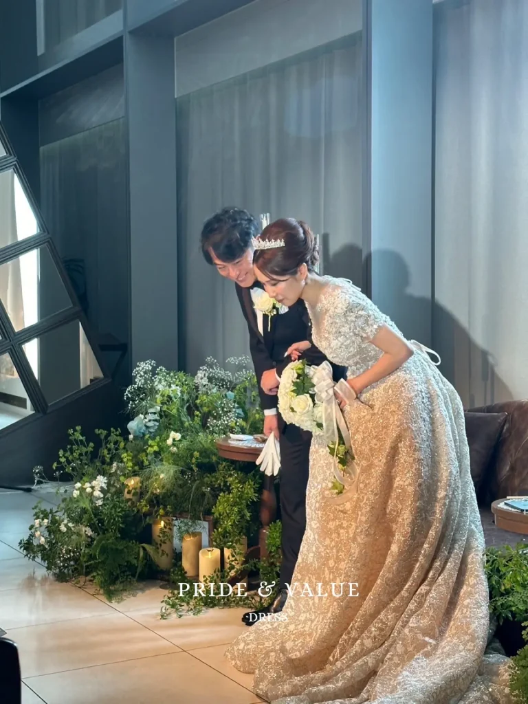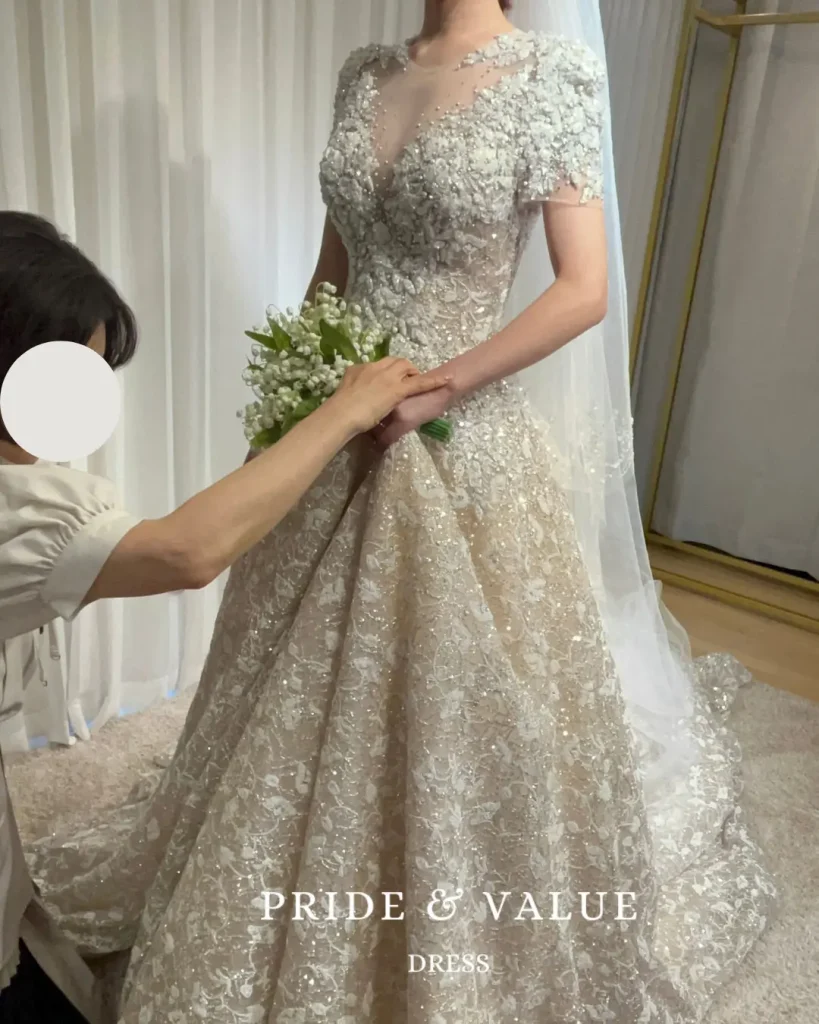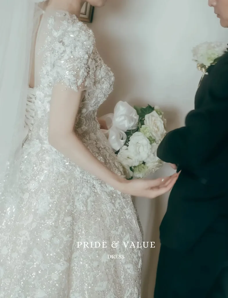 韓国ウェディングドレス専門店〈Pride & Value Dress(プラバリュ)〉で叶えた、華やかで品格ある韓国花嫁スタイル