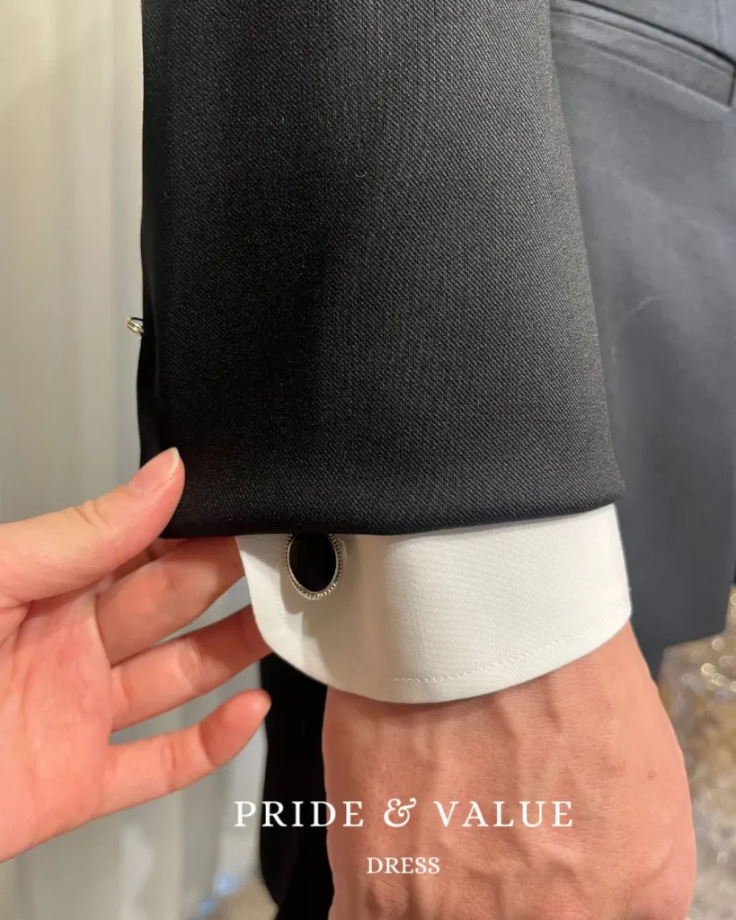 花嫁様のドレス選びがひと段落した後、今度は新郎様が韓国タキシードをご試着されることに。いくつかお試しいただいた中で、ある一着を羽織られた瞬間…「これにします!」と、なんとその場で即決!特に気に入っていただいたのが、韓国スタイルのシークレットシューズ。「これ、どこで売ってますか?普段使いにも欲しいくらい!」とおっしゃるほど気に入ってくださいました♡