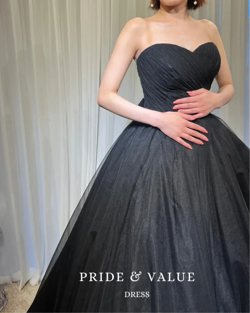 続くドレスにも「どれも可愛くて悩む…」と、嬉しいご感想をいただき、スタッフ一同とても幸せな気持ちに包まれました。数多くのドレスを見てこられたご新婦様に、ここまで喜んでいただけたことは、“韓国ドレス専門店”として大きな自信にもつながりました。韓国ドレスの魅力は、写真映えはもちろんのこと、ディテールや素材感、シルエットの美しさにもしっかりこだわっている点。プレ花嫁様の「こういうのが着たかった!」が詰まった一着に、きっと出会っていただけるはず。