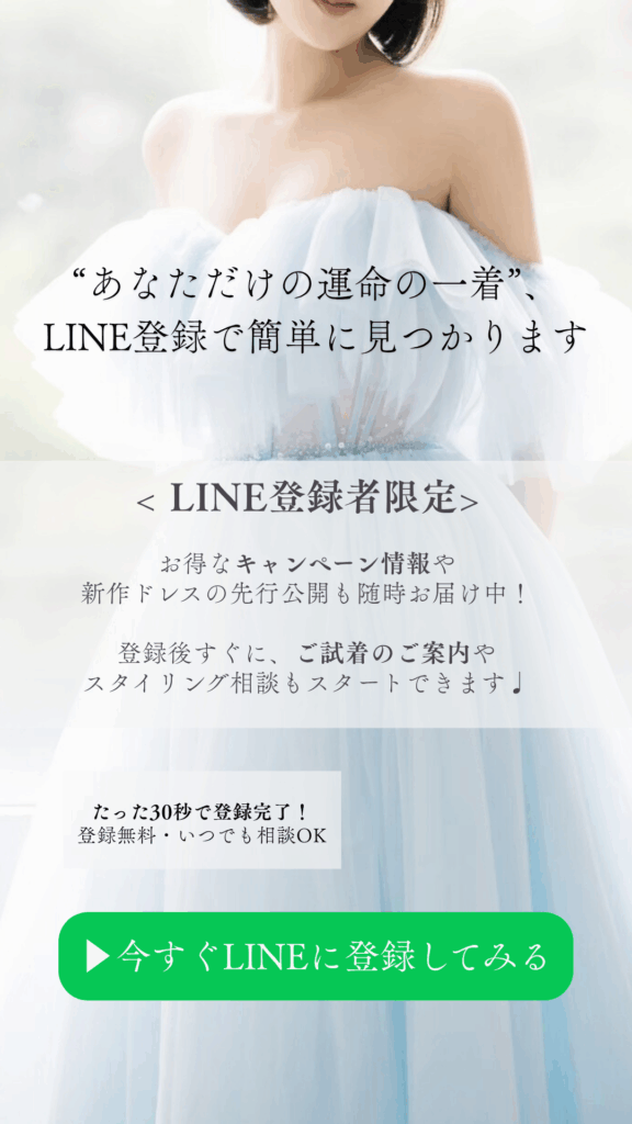 韓国ドレスにご興味のある方も、ドレス選びにこだわりたい方も、まずはLINEからご相談いただければ幸いです。